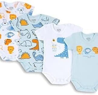 «Conjunto de 4 monos. 2 con all over 2 a tinta unita. Cómoda apertura en el hombro izquierdo. Abertura en la pierna con botones. Esta prenda se confeccionó con algodón de una cadena de suministro gestionada de forma responsable, porque Chicco quiere garantizar a nuestros hijos un futuro mejor».