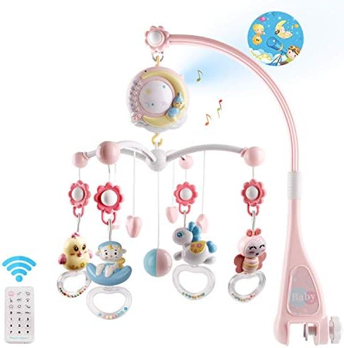 versión rosalCaja de música con funciones de luz y música, proyección, rotación y Volumen ajustable, mantenga presionado el botón V- o V+ para ajustar el volumen.Con mando a distancia para las madres que quieren hacer las tareas del hogar.