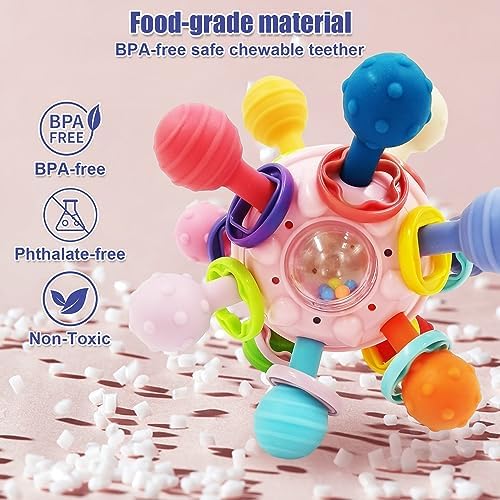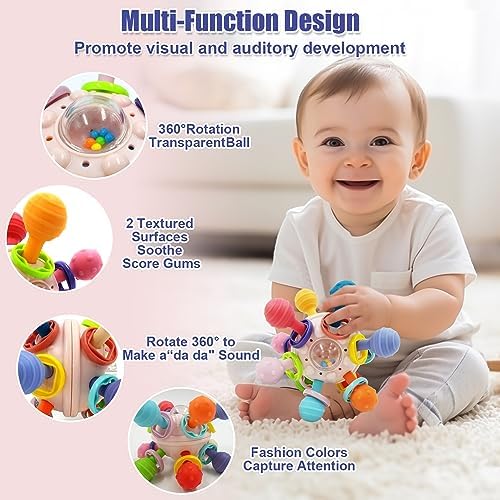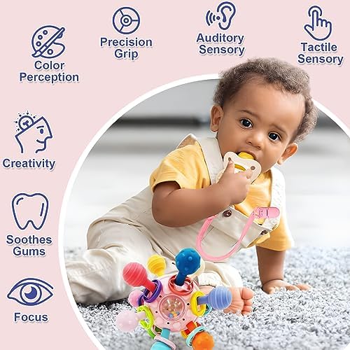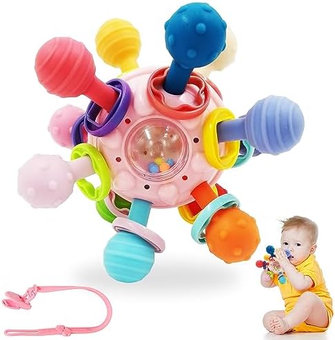 Juguete Mordedor Dentición Sonajero Bebé 0 a 12 Meses Con Clip del Pacificador juguete sensorial Pelota Educativos para Bebé Sonajero Juguetes Infantiles Sin BPA Para Niños Regalo