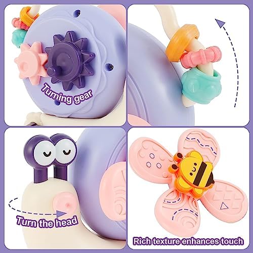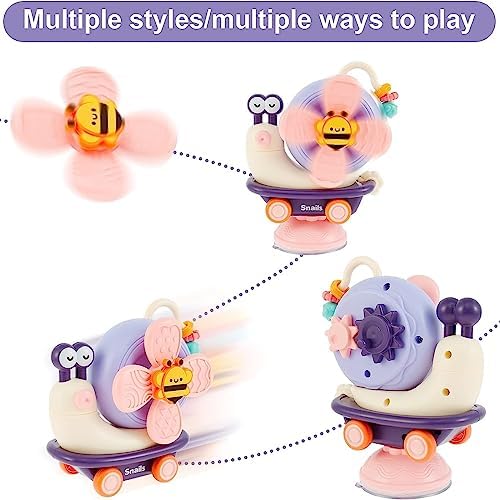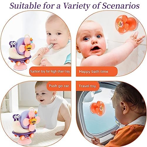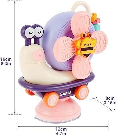 【Adecuado Para Una Variedad De Escenarios】Un lindo carro de caracol andante sigue moviéndose, anima al bebé a gatear. Pégalo en la pared o en la bañera y mantente bien, feliz hora del baño. O pega la ventana del coche como juguetes de viaje, mantén al bebé tranquilo mientras juega.
