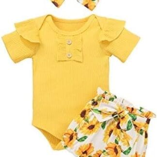 🌸 El paquete incluye: 1pc Blusas + 1pc Pantalón Corto + 1pc Banda de Pelo