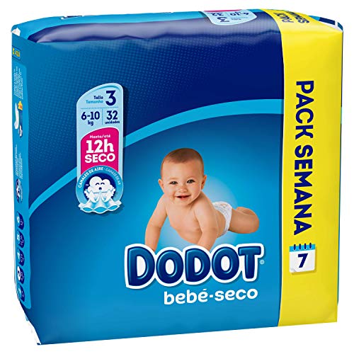 Dodot Bebé-Seco Pañales Talla 3, 32 Pañales, El Unico Pañal Con Canales De Aire, 6 a 10 kg