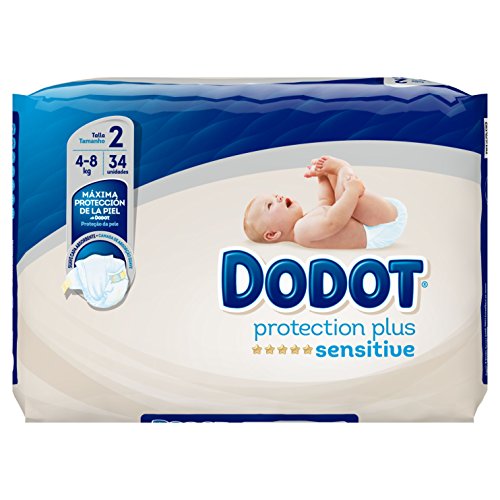 Dodot Pañales Protection Plus Sensitive, Talla 2, para Bebes de 4 a 8 kg – 34 Pañales