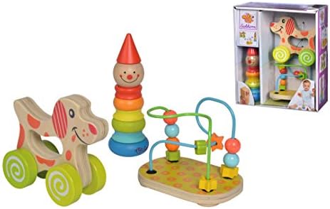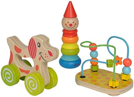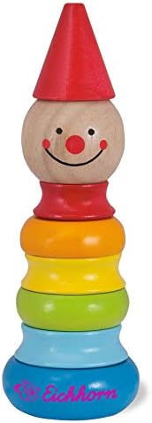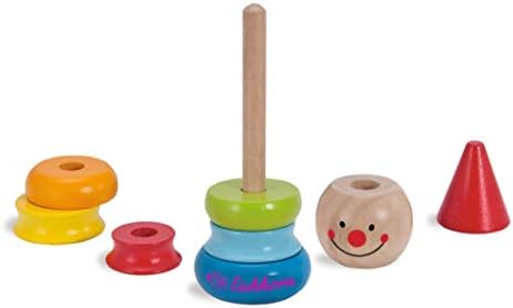 El juego promueve muchos sentidos de los más pequeños. La figura de payaso se compone de seis coloridos anillos de madera en diferentes colores y tamaños. El juego de ranuras, en el que los anillos deben colocarse de acuerdo con el tamaño, promueve la motricidad y la coordinación mano-ojo de los niños. El lazo de motricidad también ayuda a aprender jugando las diferentes formas y colores. Además, el perro corredero contribuye a la movilidad del niño. El juego versátil es adecuado para niños a partir de un año.