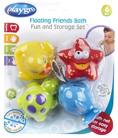 Contenido: 1x Playgro Juguete de baño 4 Amigos, Incluye red de almacenamiento, Colores: Amarillo, Rojo, Azul, Verde, Nº 40223