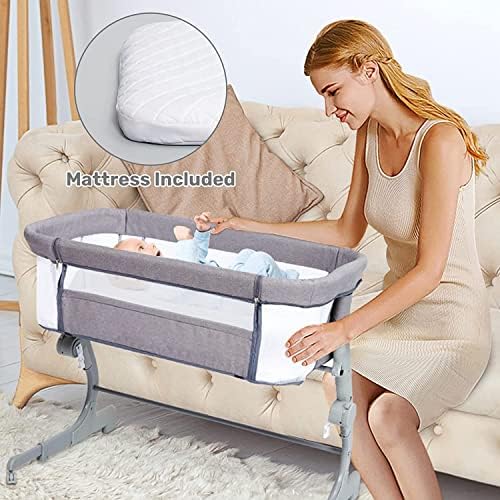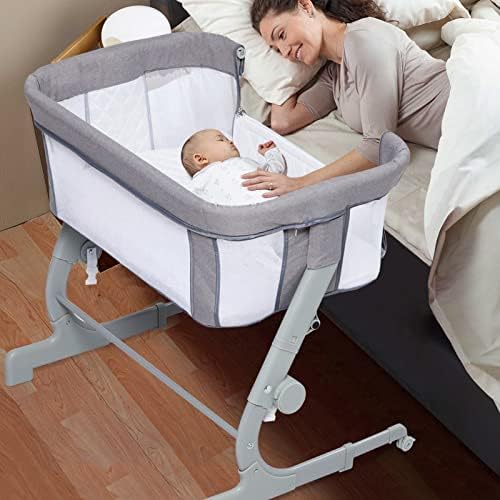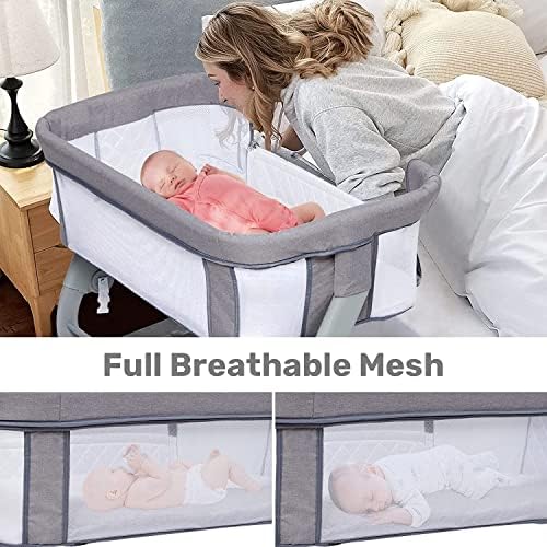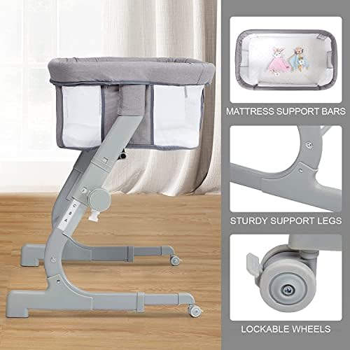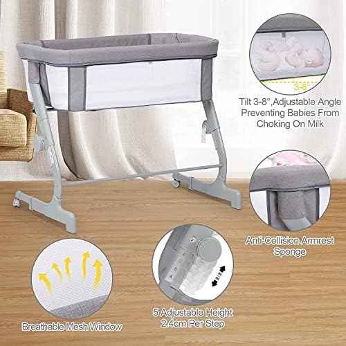 【Modo de inclinación para mayor seguridad】 El Baby Bassinet Bedside Sleeper se puede inclinar de 30 a 60 grados, lo que puede ayudar a prevenir el reflujo y la asfixia en los bebés, lo que facilita la alimentación.